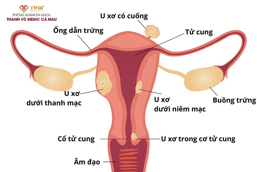 Nhân xơ có thể xuất hiện ở các vị trí khác nhau.
